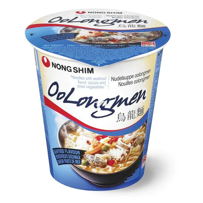 Ingrediente:Noodle: făină de grâu, amidon de cartofi, ulei de palmier, sare, condiment (umectant: E420, ulei de floarea soarelui, emulgator: E322), regulator de aciditate: E501, E500, E339, lichid tocoferol (antioxidant: E306, emulgator: E322), ceai verde extract, culoare: E160a.